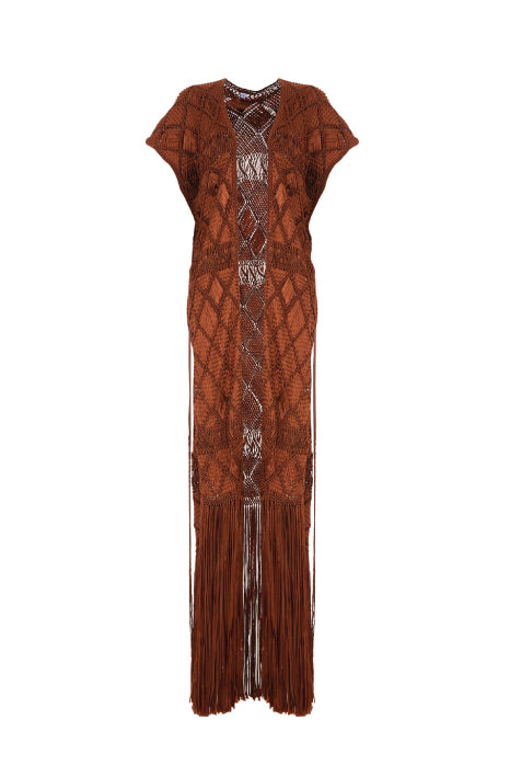 Nuestra capa totalmente tejida a mano resalta por su versatilidad y la riqueza de textura en su tejido. La puedes usar de día o de noche. Es perfecta para agregar un toque especial a un outfit casual.